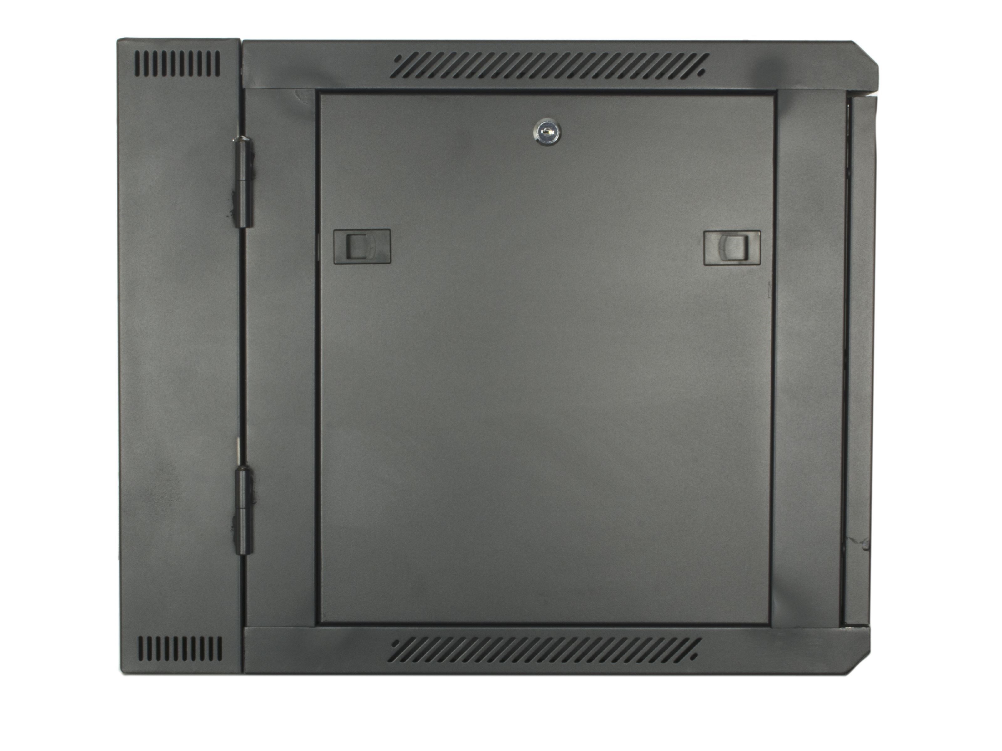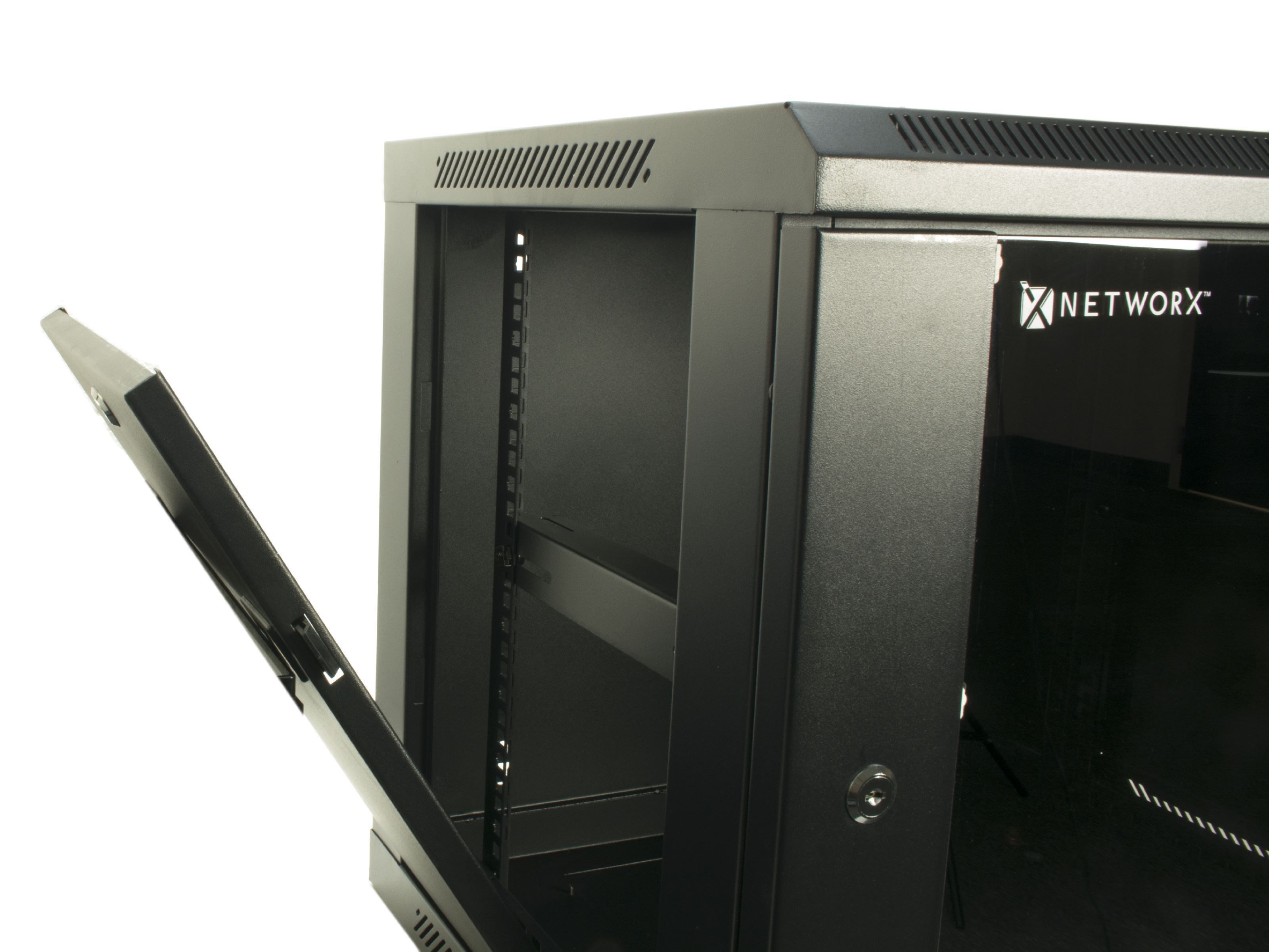 Get organized with the 12U 301 Series of Swing Out Wall Mount Cabinets from Networx®. The Swing Out style of cabients allows for the rear door of the cabinet to open up and allow even great flexibility and access. This cabinet comes equipped with some of the most requested features. Starting with the basics, this Wall Mount Cabinet is constructed with high quality SPCC Cold-Rolled Steel Panels. All Networx® Wall Mount Cabinets come with removable side panels, which include vents to keep equipment cool, to allow for quick access to sensitive networking equipment. All front panels swing out for easy access to loaded network equipment and include a window of 5mm tempered glass. Included with this high quality Wall Mount Cabinet are dual 120mm fans for ideal air movement to keep network equipment cool and running at peak performance. Adjustable rails allow for full customization to allow a variety of networking equipment to fit securely. The rails are punched to allow for the installation of M6 Cage Nuts. Both Side Panels and Front Door are lockable with the included set of keys. Top/Bottom/Rear knockouts for cable entry and exit. All racks are designed to house 19" rack mountable equipment.