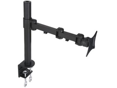 The AV-DM01 is a high-quality low-cost LCD Desk Mount that offers a functional solution for mounting a 13"-27" LCD Monitor to your desk. This LCD Desk Mount offers many advantages over a typical desktop stand which most LCD Monitors are packaged with. By elevating the monitor above the desk, there is an immediate increase in space available under the monitor. Not only does this open up space below but it also allows for precise adjustments to get these monitors exactly where they are needed. The arms have a full 180° of tilt available which give you 90° in either direction as well as a full 360° of rotation for easy horizontal or portrait orientation. Arm can support up to 22 lbs.