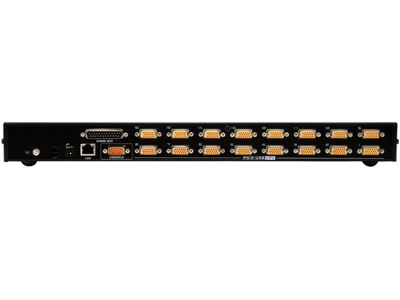 The CS1716i KVM switch is an IP based KVM that allows either a local or remote operator to monitor and control 16 directly attached servers, or through daisy chaining as many as 256 computers.