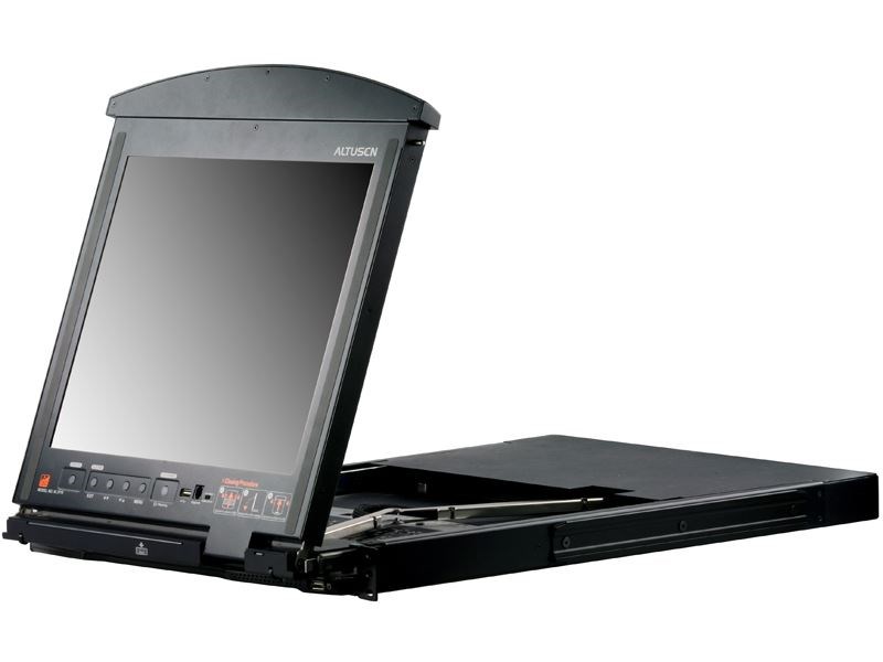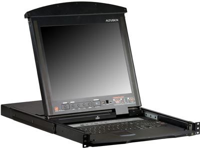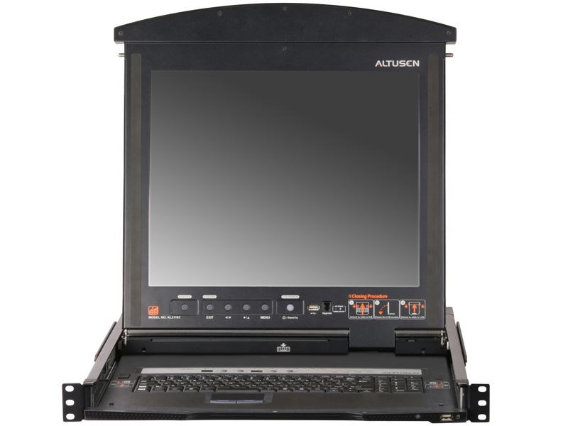 The KL3116T Dual Rail Touch Screen KVMP™ Switch is an integrated LCD console and KVM (keyboard, video, and mouse) switch that offers secure access to 16 attached computers with a dual USB or PS/2 interface, and mounts in only 1U of rack space. It features an independently retractable 17" touch screen LCD monitor and keyboard with built-in touchpad. To maximize space in your data center the keyboard “hides away” when not in use, while the thin profile LCD monitor reclines flush against the rack to enable continuous monitoring of computers. The KL3116T is ideal for industrial environments such as factory production lines, laboratories, and sever rooms, or anywhere else an LCD KVM switch is required. Anyone working on a production line while wearing gloves knows the difficulty of trying to control on-screen testing programs with the use of a mouse. The KL3116T touch screen is the easiest and most convenient way to solve problems with user interactive production line testing programs. As many as 31 additional switches can be daisy-chained together, so that up to 512 computers can be controlled from a single keyboard, touch screen, and mouse console. You can also conveniently share USB peripherals attached to the KL3116T with computers on the same level. The KL3116T is the first Dual Rail Touch Screen KVMP™ Switch of its kind that requires no additional software to operate; simply connect the KL3116T to your installation and begin using it immediately.