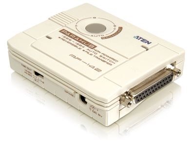 The AF142 is a reversable Bitronics Auto Switch that will operate in either, one computer to two printers mode, or two computers to one printer mode, called respectively 1 to 2 mode and 2 to 1 mode. These switches operate in 2 to 1 mode without software drivers and deliver print jobs to the printer on a first come, first served basis. This means that if one computer is printing to the printer the other computer must wait for the Auto Switch to finish the current print job. The AF142, when operating in 1 to 2 mode, uses the AS Ware driver to select which printer of the attached to the Auto Switch will print the print job. You can only be printing to one printer at a time unless both printers are identical and you wish to rapidly produce many copies of the same document. The AF142 can go into a unique "broadcast" mode and both printers will print the exact same document, leaving you with two copies.