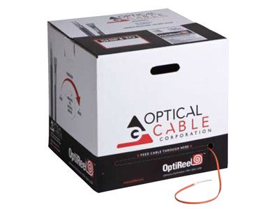 OptiReel cable box saves installers time. OptiReel is a self-contained payout box to facilitate storage, handling and pulling of cables. The packaging greatly reduces set-up time for each pull. Therefore, the box is ideally suited for cable pulls through building duct systems, walls and ceilings where multiple cables may be pulled together and many relatively short runs need to be installed. The compact boxes contain an internal reel so that cable stands do not have to be used. Cables in the boxes are marked with decreasing length markings, so that the installer always knows the length of the remaining cable in the box.