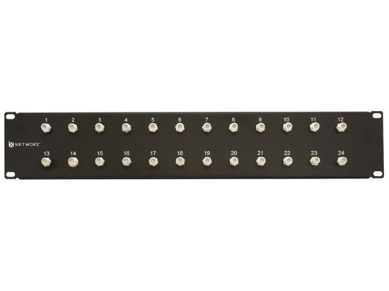 Coaxial Patch Panels are great for setting up a video distribution network. Often used in Resturants and similar establishments, coaxial patch panels will allow you to distribute multiple video signals from their source to the select output device. Made from powder coated steel this Networx™ Coaxial Patch Panel will ensure your video signals are running to their full potential. Labels above each port will make sure you able to quickly identify which port requires your attention. All Networx™ Coaxial Patch Panels come Fully Loaded and ready to be mounted in your distribution cabinet. The Networx™ 24 Port Fully Loaded F-Type Coaxial Patch Panel is a great solution when setting up any type of coaxial distsribution network.