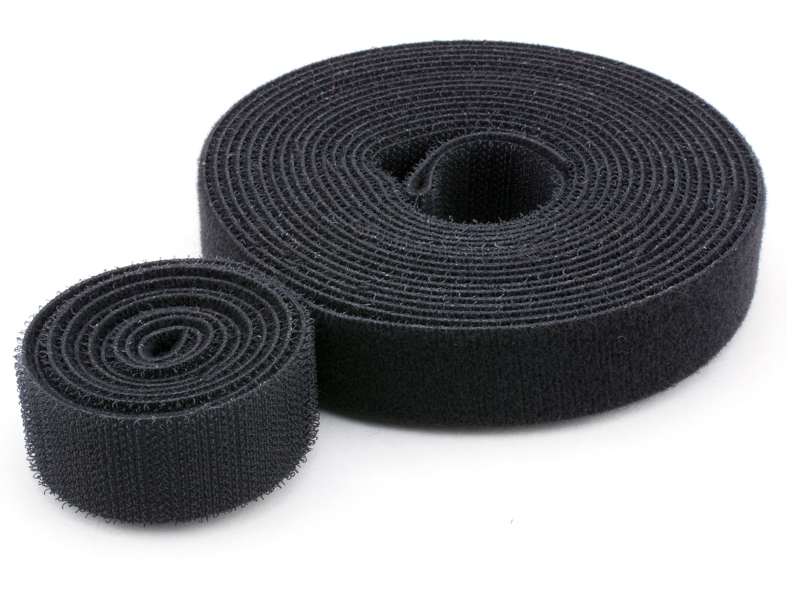3/8 Inch Continuous Black Hook and Loop Wrap - 10 Yards
