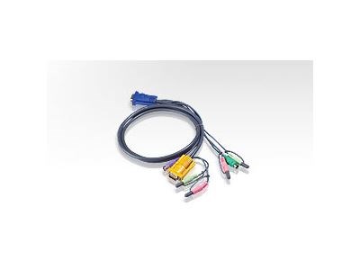 This 3ft. PS/2 KVM Cable with Audio/Mic is designed for the following ATEN KVM switches: CS1732, CS1734, CS1754, and CS1758. These all-in-one bonded KVM cables are designed to deliver superb video quality and error-free transmission for your high-resolution applications. The aluminum shield and an all-in-one bonded structure provide the maximum in quality, performance, and reliability. The custom designed the DB15 connector combines keyboard, mouse, and video connections in one to save the space on the KVM and allows 16 ports on a mere 1U high space. The thin, flexible cable and the over-sized thumbscrews also make installation quick and easy.