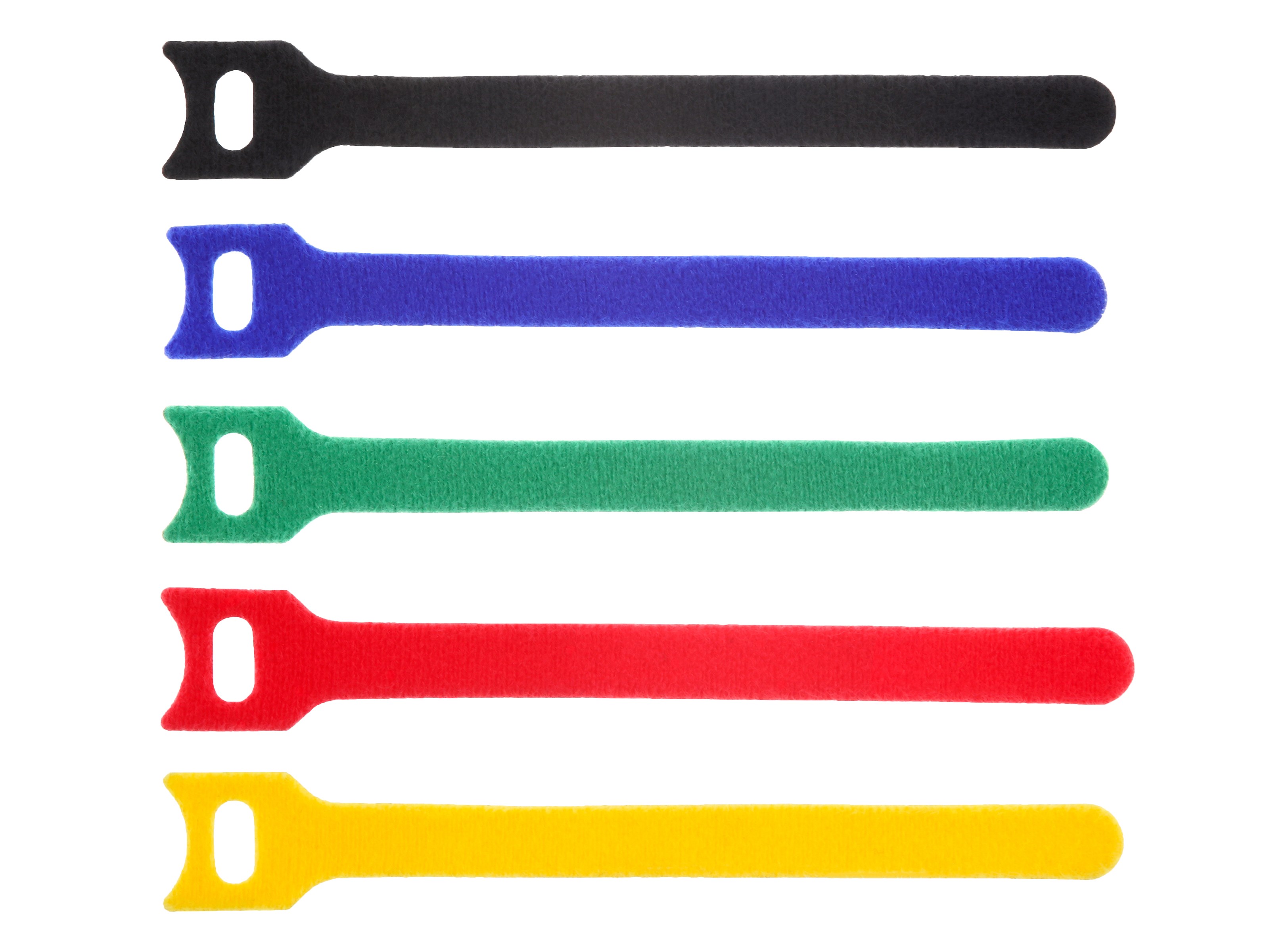 Secure™ Hook and Loop Tie Wraps are a great choice for countless applications with their simplicity, versatility and low-cost. They can be used in new building construction, network installations, home theaters, in the office, or any bundling project. Our Hook and Loop Ties are highly recommended for securing fiber optic cables; they are adjustable and don't pinch. Hook and Loop Wraps are not only designed for cables and can be used to secure virtually anything. A wide selection of colors and lengths ensures trouble-free color coding and quick identification. Secure™ Hook and Loop Cable Tie Wraps can be replaced and readjusted in almost no time and require no tools. Our 6 and 8 Inch Hook and Loop Cable Tie Wraps have a minimum shear strength of 10 lbs. and minimum peel strength of .38 lbs.Contains TWO of each color!