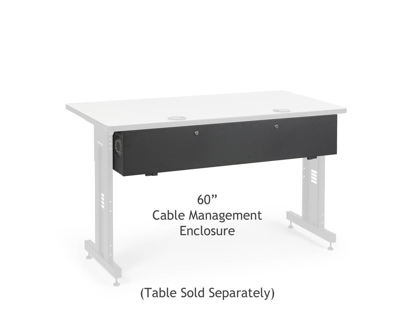 The Training Table Cable Management Enclosure encases and hides the surface and modesty panel cable entrance points, providing a clean and polished look for your Advanced Class Training Table. This enclosure also provides a cable lock point for computer security devices to be secured to, protecting community or public equipment. Multiple knockouts provide easy cable routing down to the CPU or from desk to desk. The included fan pattern allows you to install an optional fan kit, providing additional airflow which is especially helpful when heat generating equipment is housed inside.