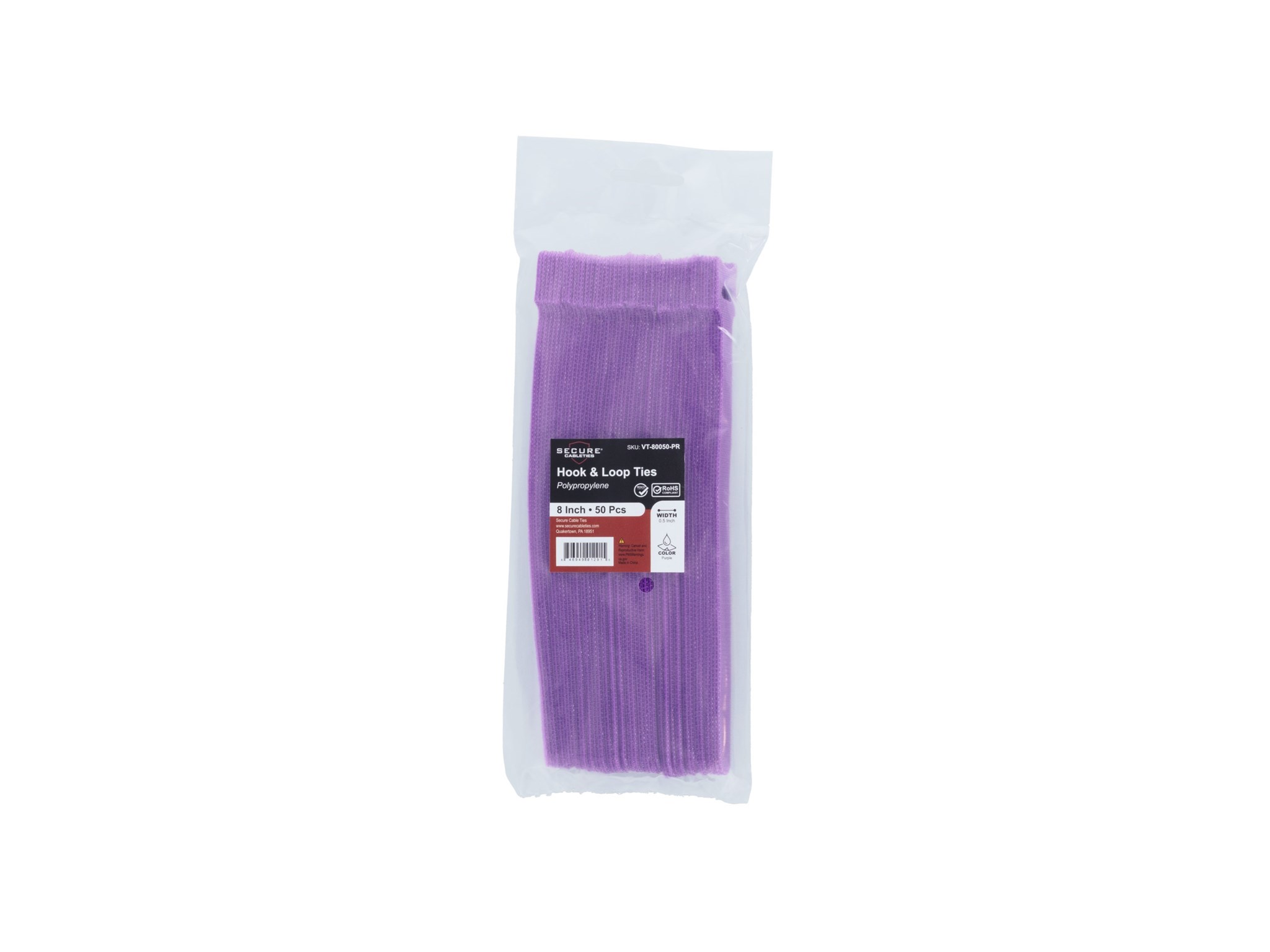 8 Inch Purple Hook and Loop Tie Wrap - 50 Pack
