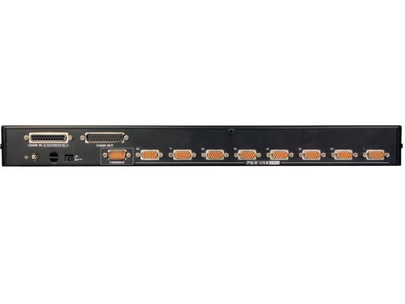 The CS1708A KVM allows access to 8 directly connected computers, and through Daisy chain architecture as many as 256 total servers may be controlled from a single keyboard, mouse and monitor.