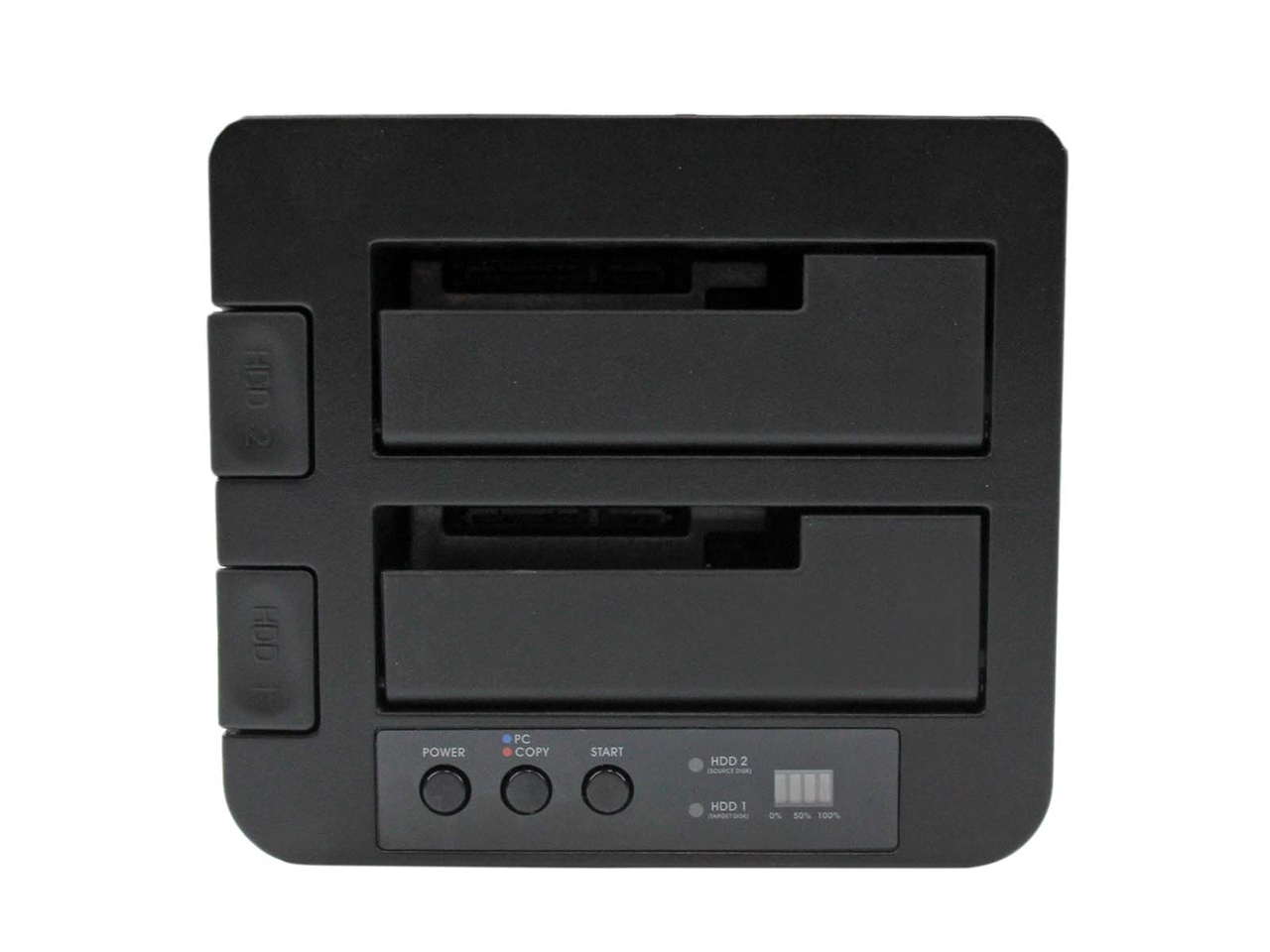 The SDOCK2U33RE Dual 2.5/3.5" SATA HDD/SSD duplicator dock lets you duplicate/clone an existing hard drive without the use of a host computer system -- or dock and swap drives from your desktop or laptop computer simultaneously, using a single USB or eSATA port.