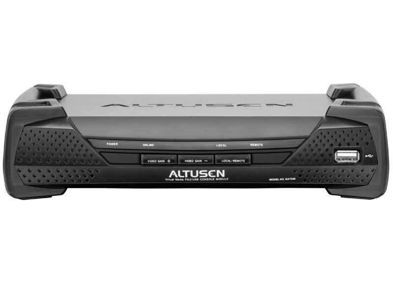 The KA7240 Console Module provides the means to access Matrix KVMs. It allows up to 900 feet separation between console and CPU module over CAT-5 (or better) cabling.