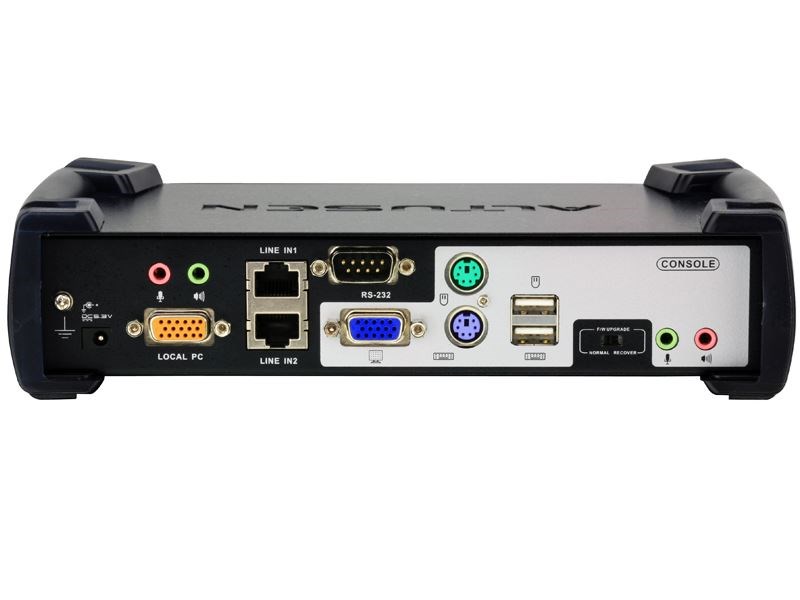 The KA7240 Console Module provides the means to access Matrix KVMs. It allows up to 900 feet separation between console and CPU module over CAT-5 (or better) cabling. When used with a KA7176 CPU module, the console supports audio and virtual media through the KVM to the attached servers. In addition to providing a connection to the Matrix switch, the KA7230 acts like a KVM in that you can connect your work station to the console port , leaving a single keyboard, mouse, and monitor on your desk to control both the servers attached to the KVM and your desktop workstation. Additional features of the KA7240 include the ability to use any combination of PS/2 or USB keyboard and mouse. A built in RS232 port allows an Administrator to monitor all logged on users and dynamically switch or deny a user access to a particular server or even access to the KVM itself. In a large server environment, this feature may be used to project the display on a screen to provide an over view and control of each logged on user.