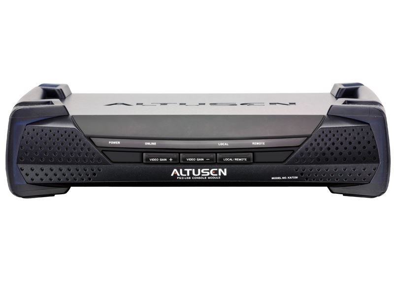 The KA7230 Console Module provides the means to access Matrix KVMs. It allows up to 900 feet separation between console and KVM over CAT-5 (or better) cabling.